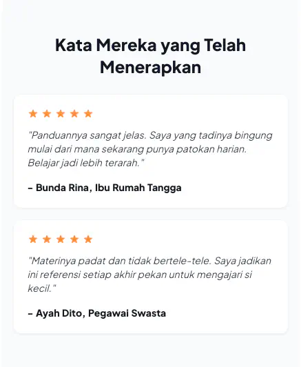 Justru metode ini dirancang untuk orang tua yang sibuk. Modulnya singkat, langsung ke inti, dan bisa dipelajari dalam 10-15 menit saja sebelum mempraktekkannya ke anak.